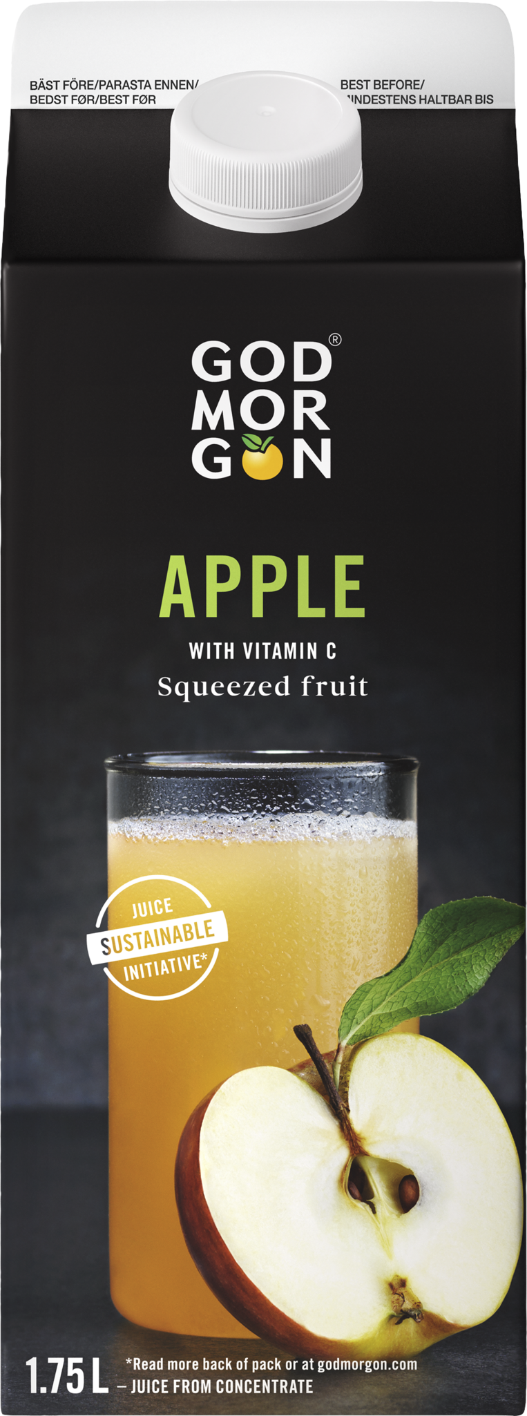 God Morgon® Eple er en ufiltrert eplejuice, som er fyldig, smaksrik og har en ekte eplesmak. Ønskar du en mildere juice, så har du valgt riktig! Nøye utvalgte røde, grønne og gule epler gir en jevn juice med fin sødme. Som alt annet fra naturen varierer smaken på vår eplejuice med sesongene. Vi plukker og presser eplene når de er på sitt beste.